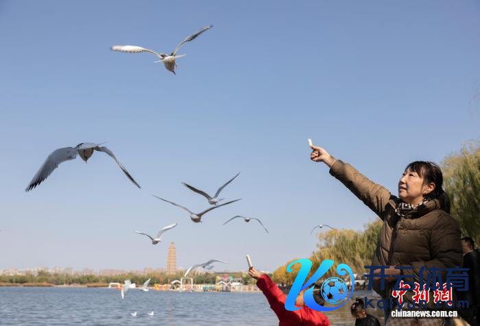 市民在银川市海宝公园内与红嘴鸥互动。 中新网记者 杨迪 摄