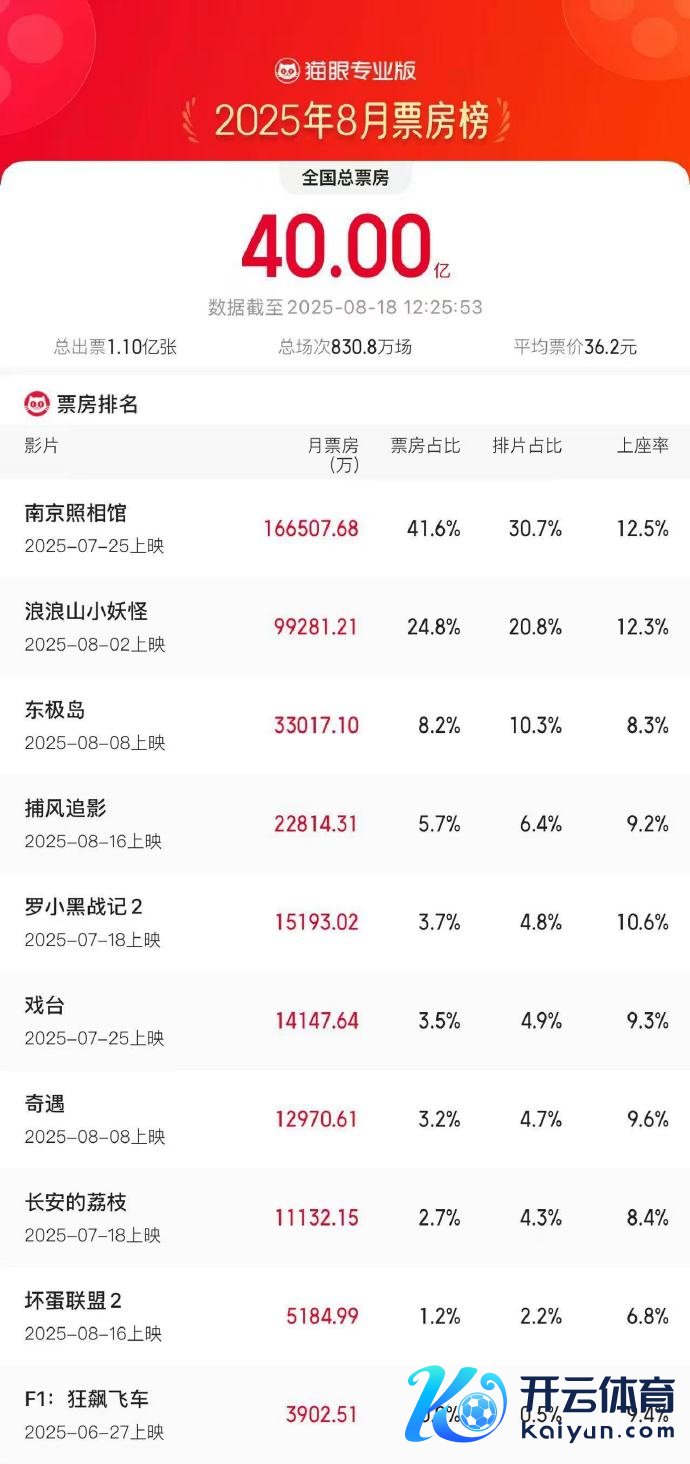 2025年8月总票房破40亿开云体育2025年8月总票房破40亿