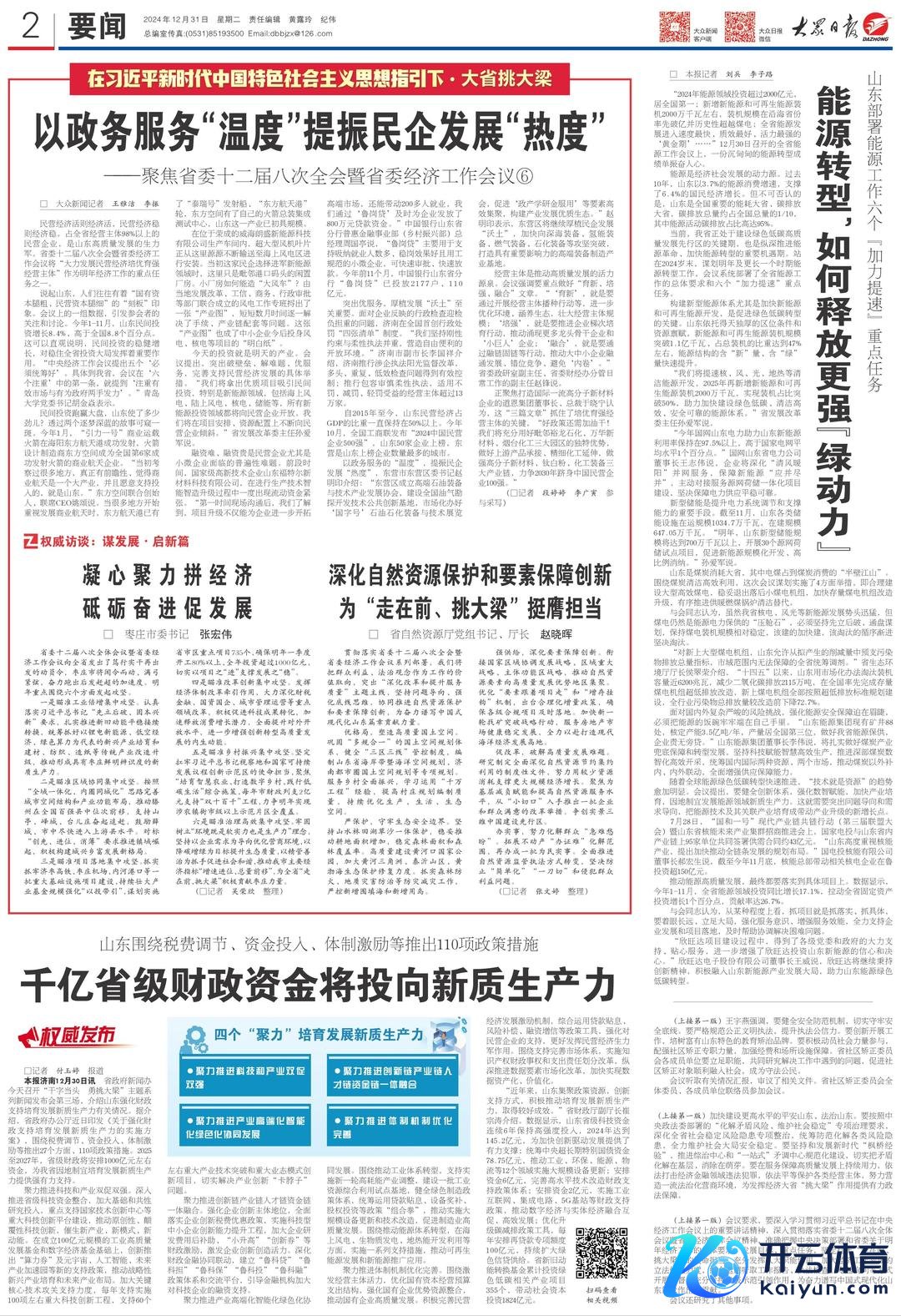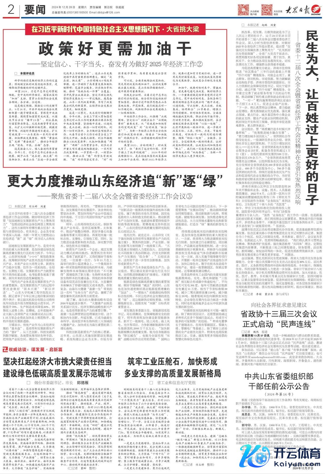 近日召开的省委十二届八次全会暨省委经济劳动会议明确,作念好来岁经济劳动要“在因地制宜发展新质坐蓐力上聚焦使劲”“在推动经济社会绿色转型上聚焦使劲”。这些方面来岁有哪些要点任务?本报与省委财承办、探究单元、企业及内行学者深入疏通,为新一年更鼎力度推动山东经济追“新”逐“绿”找寻切入点和冲突口。