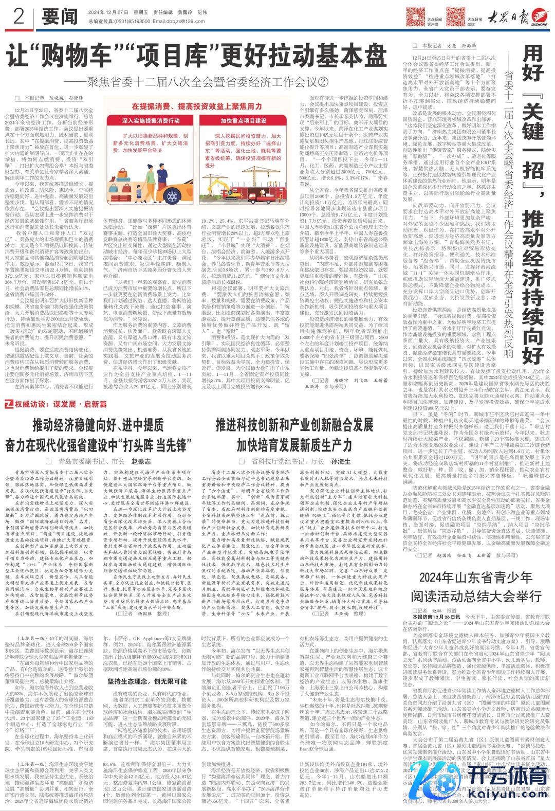 2024年是山东历史上极不粗莽的一年。习近平总通知再次亲临山东观察,发表枢纽谈话,指引山东在世界发展大局中定好位、挑大梁,起劲谱写中国式当代化山东篇章。“搭救经济大省挑大梁”,左近岁尾,中央经济劳动会议部署来岁要点任务,经济大省再次被委以“挑大梁”重负。