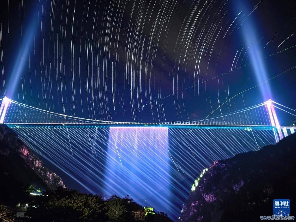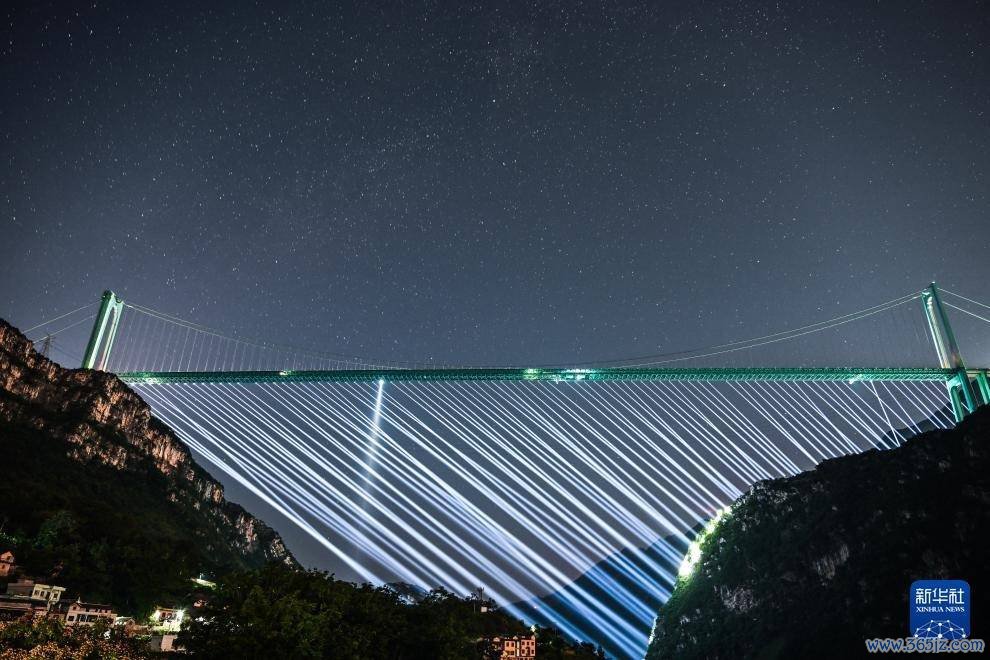 r夜晚,新的天下第一高桥——贵州花江峡谷大桥呈现出不同光影好意思景,诱骗搭客前来不雅赏。
